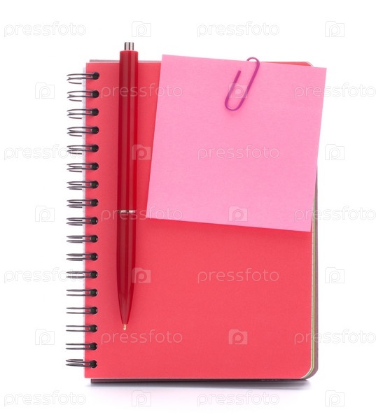 Красный блокнот с бумагой для записи и ручка
