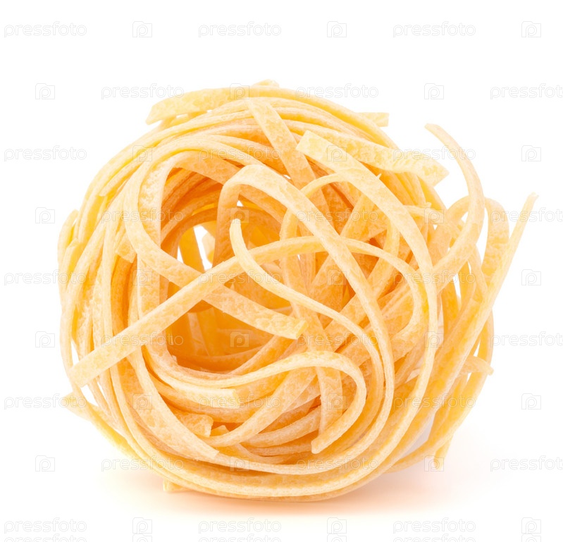 Итальянская паста тальятелле, изолированная на белом фоне