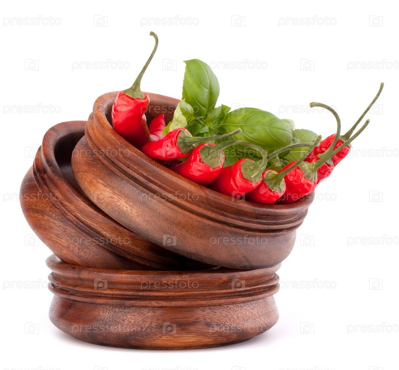 Красный перец чили в деревянной миске