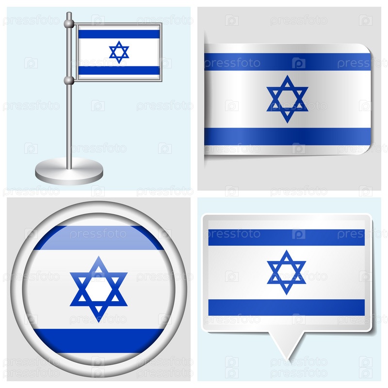 Флаг Израиля. Набор из стикера, кнопки, метки и флагштока