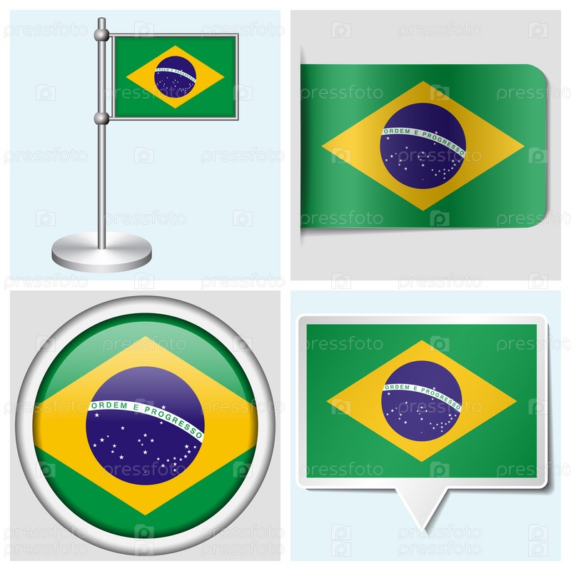 Флаг Бразилии. Набор из стикера, кнопки, метки и флагштока