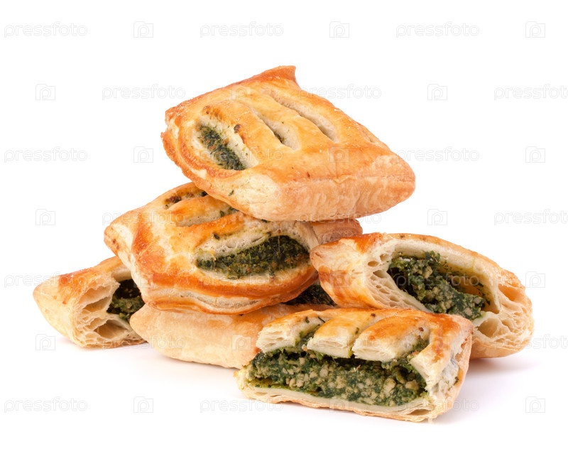 Булочки из слоеного теста на белом фоне