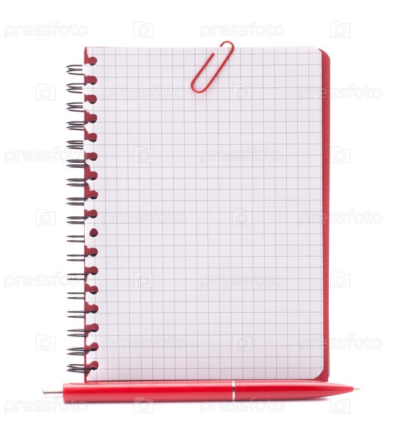 Пустой блокнот в клетку с бумагой для записей и ручкой