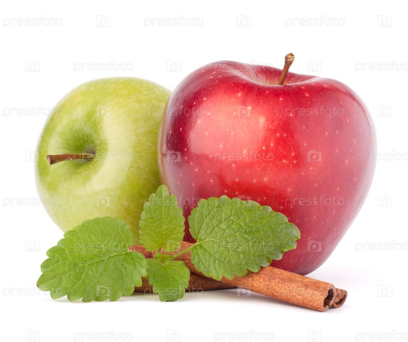Красное и зеленое яблоки, корица и мята