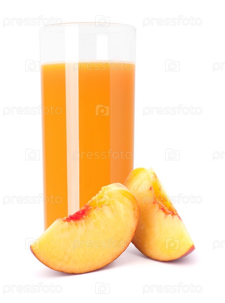 Спелый персик и стакан сока