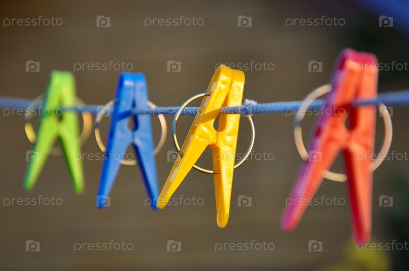 Цветные прищепки на веревке. Малая глубина резкости