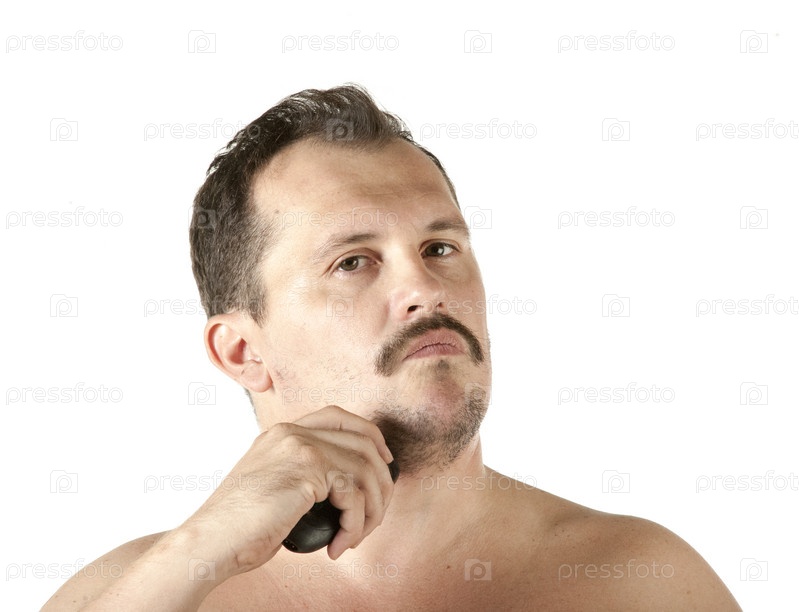 Мужчина бреется электрической бритвой