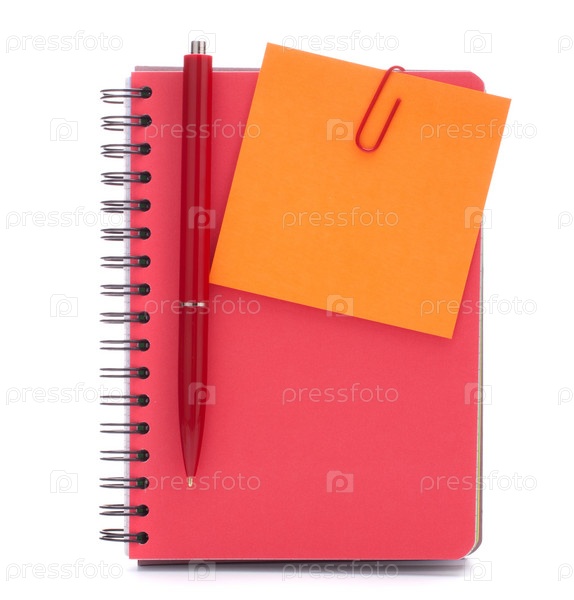 Красный блокнот, стикер и ручка