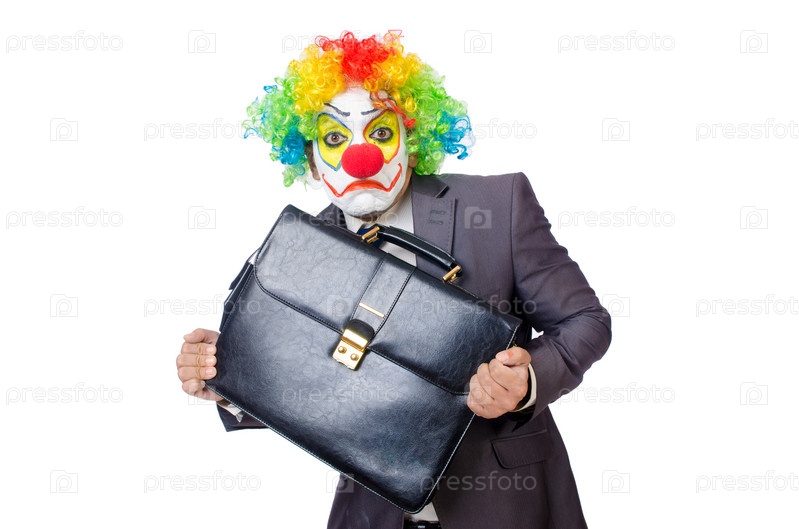 Бизнесмен-клоун, изолированный на белом фоне