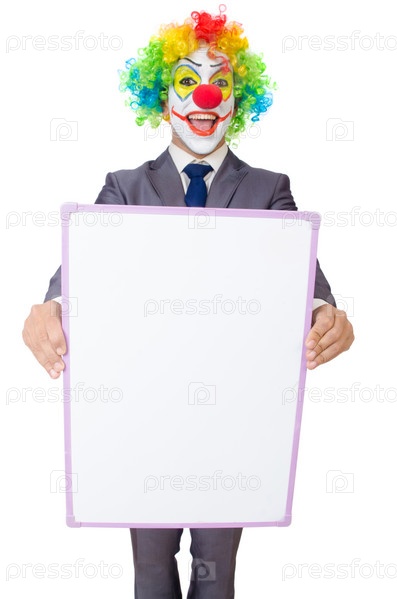 Бизнесмен клоун, изолированный на белом фоне