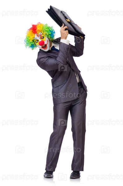 Бизнесмен-клоун, изолированный на белом фоне