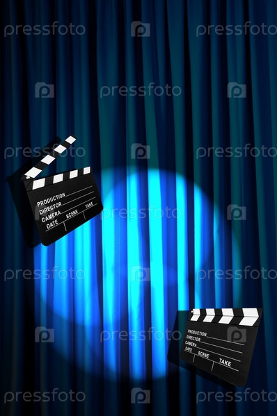 Кинохлопушки на фоне занавеса