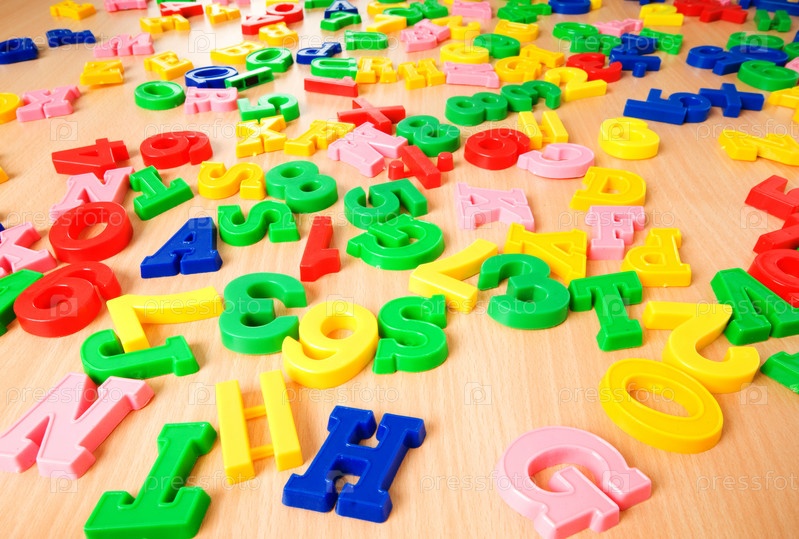 Разноцветные пластмассовые буквы и цифры