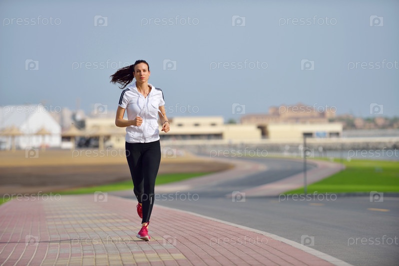 Молодая красивая женщина на утренней пробежке