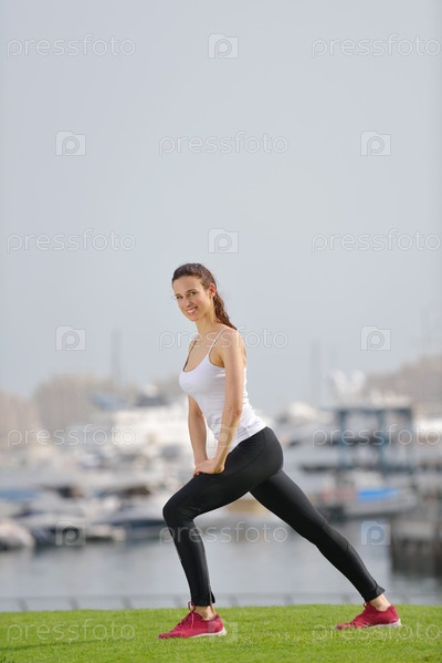 Молодая красивая женщина совершает утреннюю пробежку