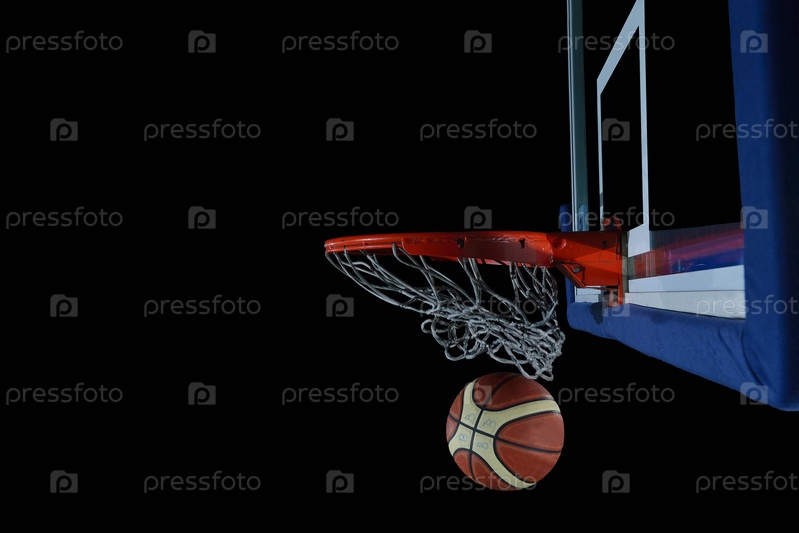 Баскетбольный мяч и сетка на черном фоне