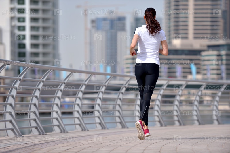Молодая красивая женщина на утренней пробежке
