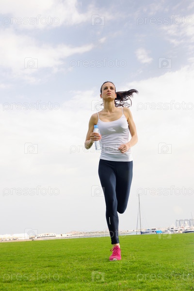 Молодая красивая женщина на утренней пробежке