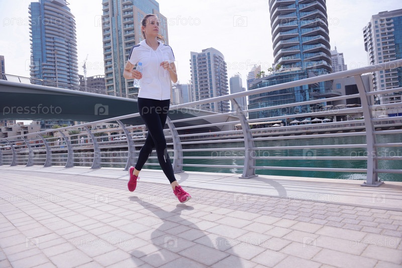 Молодая красивая женщина на утренней пробежке