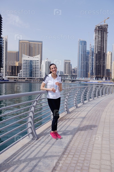 Молодая красивая женщина на утренней пробежке