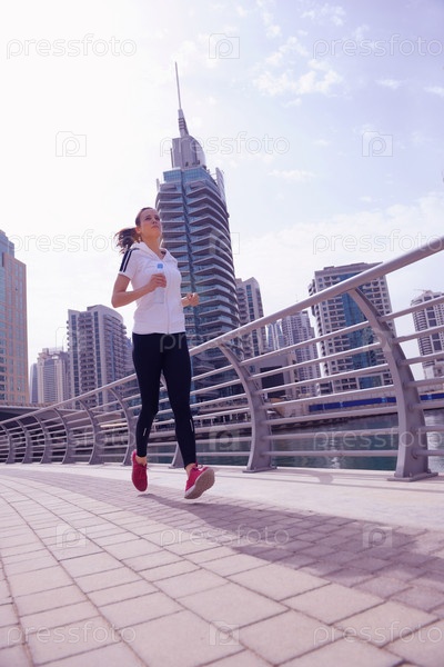 Молодая красивая женщина на утренней пробежке