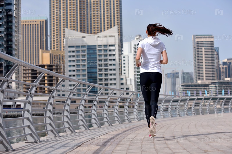 Молодая красивая женщина на утренней пробежке
