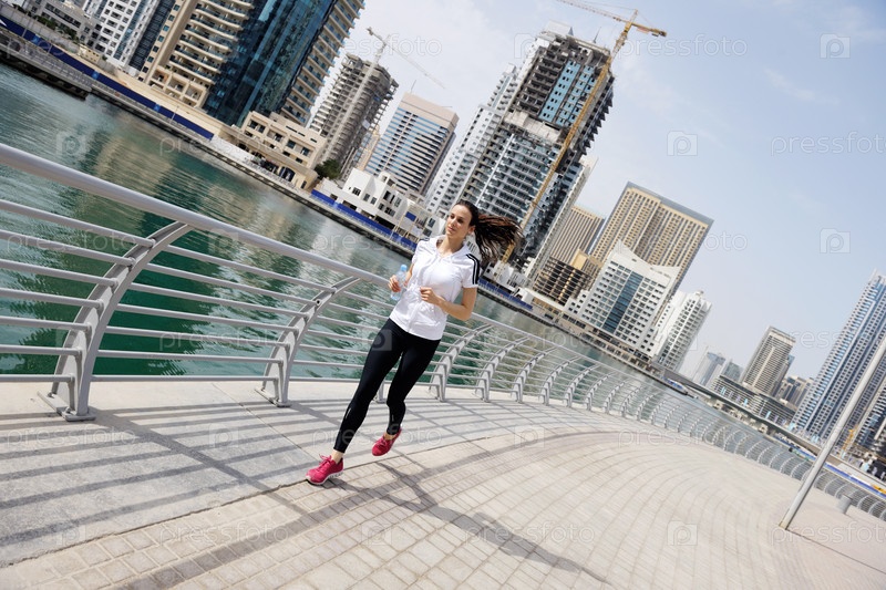 Молодая красивая женщина на утренней пробежке