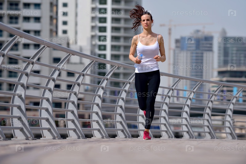 Молодая красивая женщина на утренней пробежке