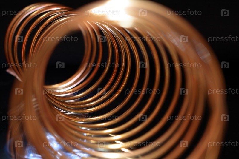 Латунная пружина на черном фоне