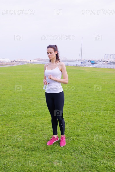 Молодая красивая женщина на утренней пробежке