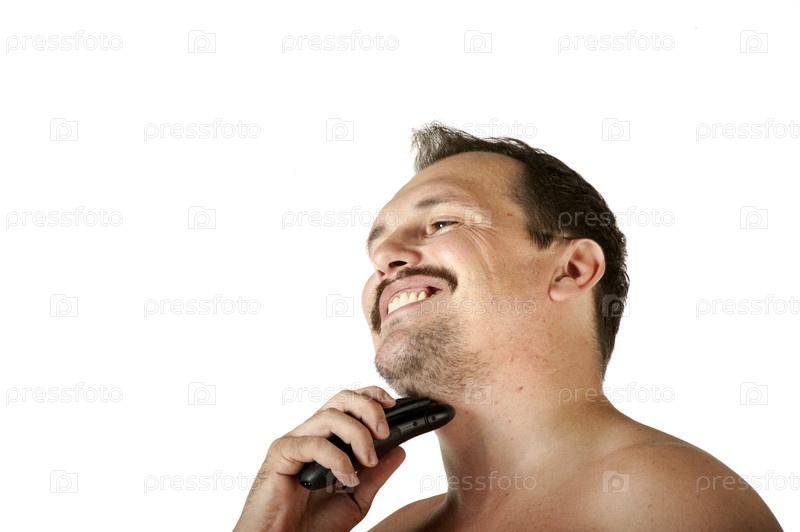 Мужчина бреет лицо с электрической бритвой