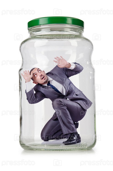 Молодой предприниматель в стеклянной банке