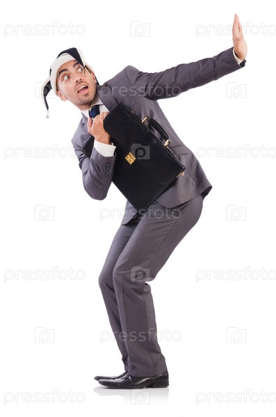 Бизнесмен в клоунском колпаке, изолированная на белом фоне