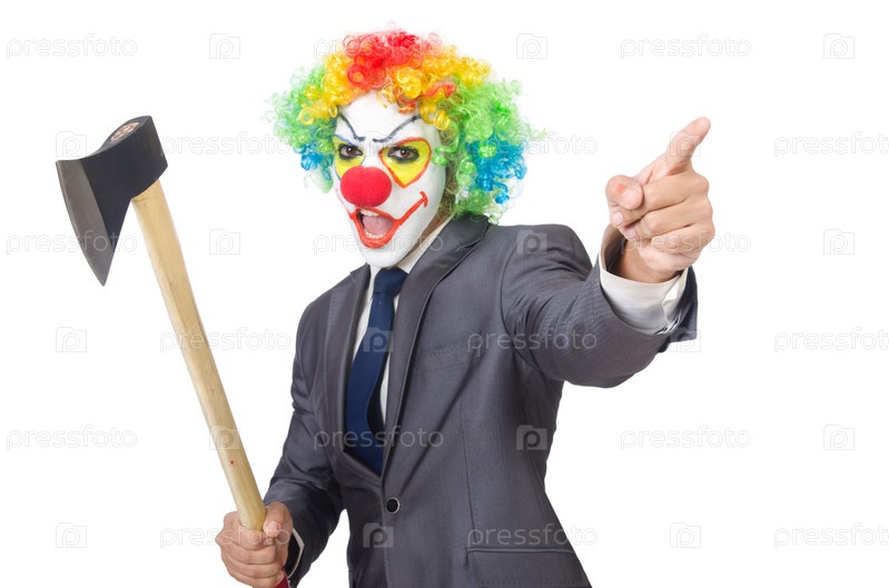 Бизнесмен в клоунском колпаке, изолированный на белом фоне