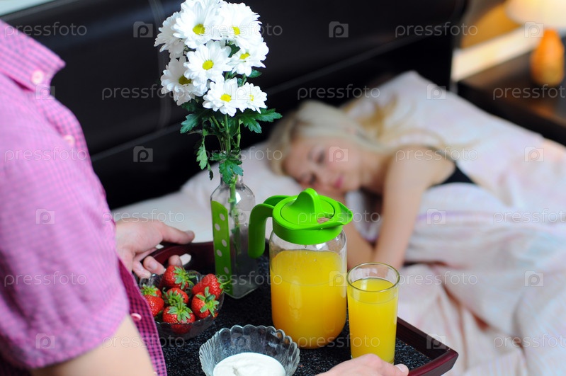 Мужчина принес завтрак в постель жене