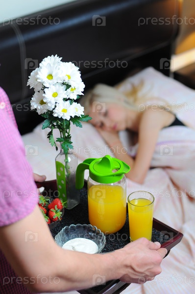 Мужчина принес завтрак в постель жене