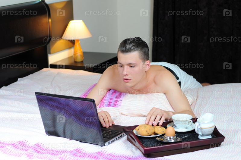 Мужчина смотрит игру онлайн на своем ноутбуке