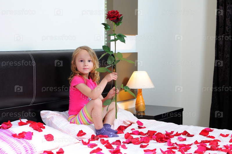 Улыбающаяся девочка с розой в руке