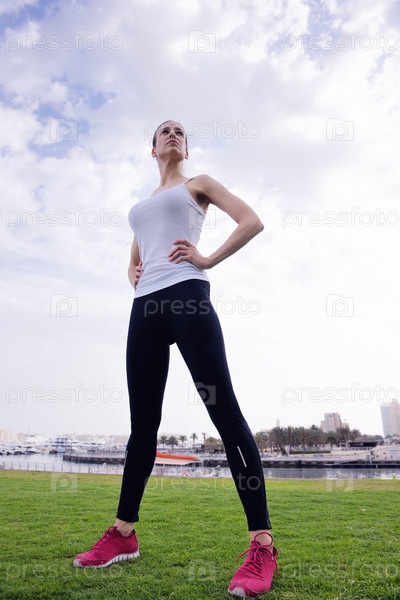 Молодая красивая женщина на утренней пробежке