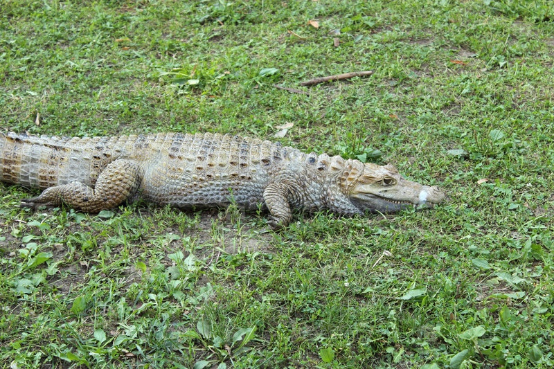 Аллигатор лежит на зеленой траве