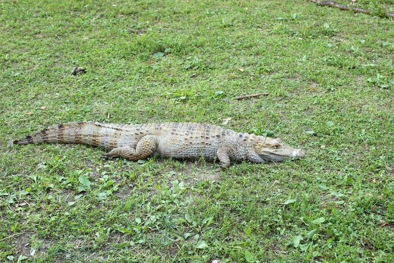 Аллигатор лежит на зеленой траве