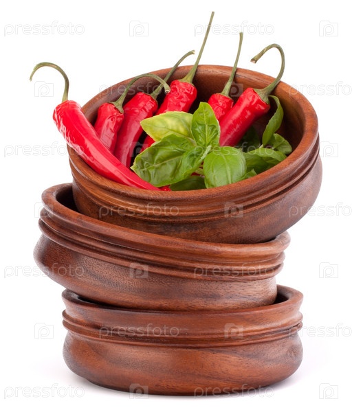 Острый красный перец в деревянных мисках