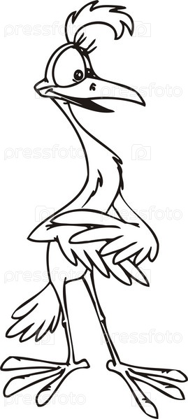 Забавная мультипликационная птица цапля. Вектор