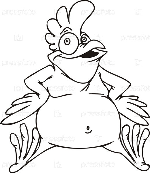 Забавная мультипликационная птица толстый петух. Вектор