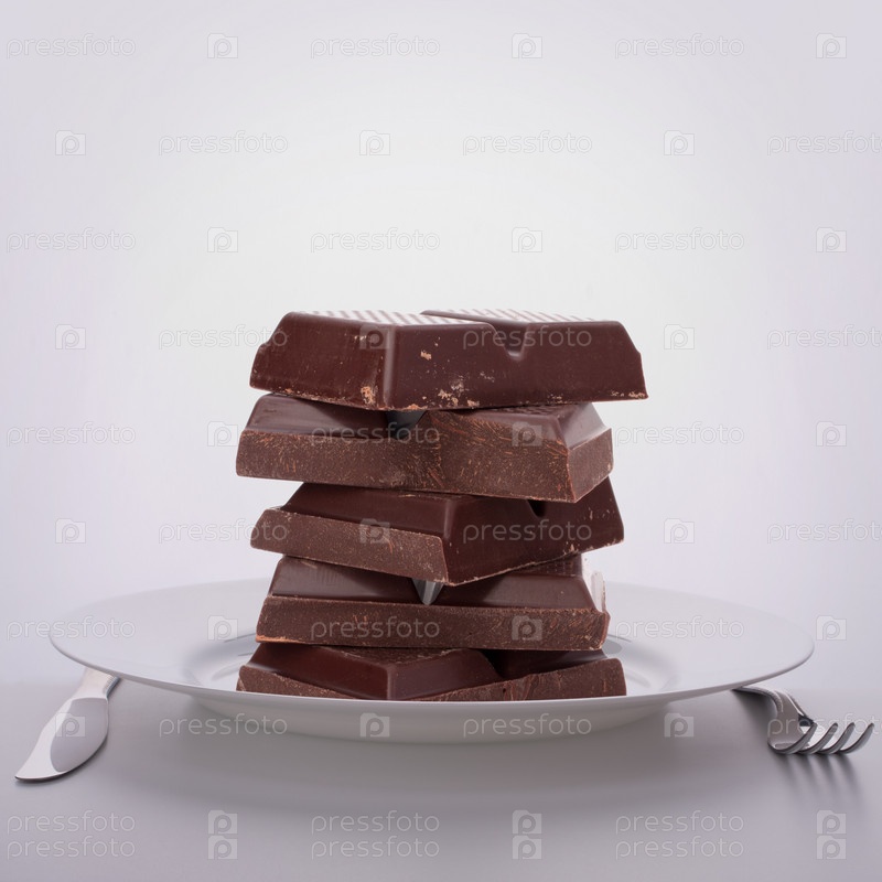 Шоколадные плитки на тарелке
