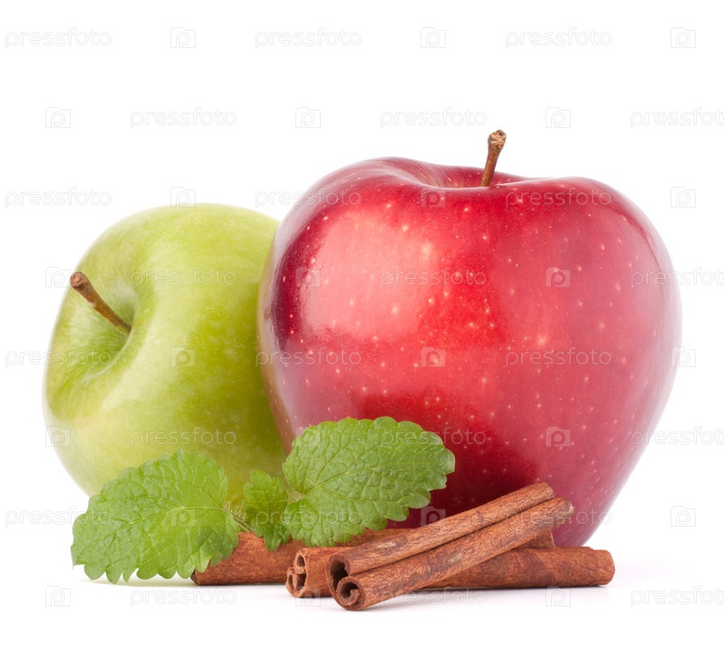 Красные и зеленые яблоки, корица и мята