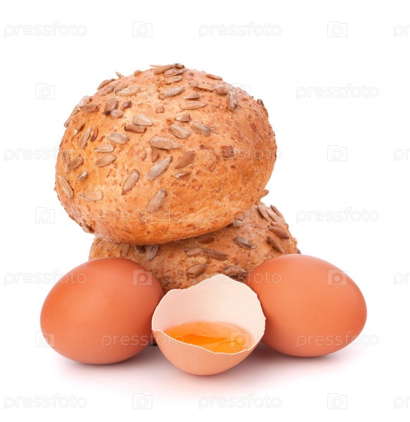 Булочки с семенами и разбитое яйцо