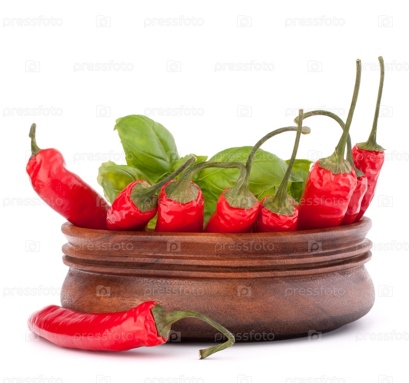 Красный перец чили в деревянной миске