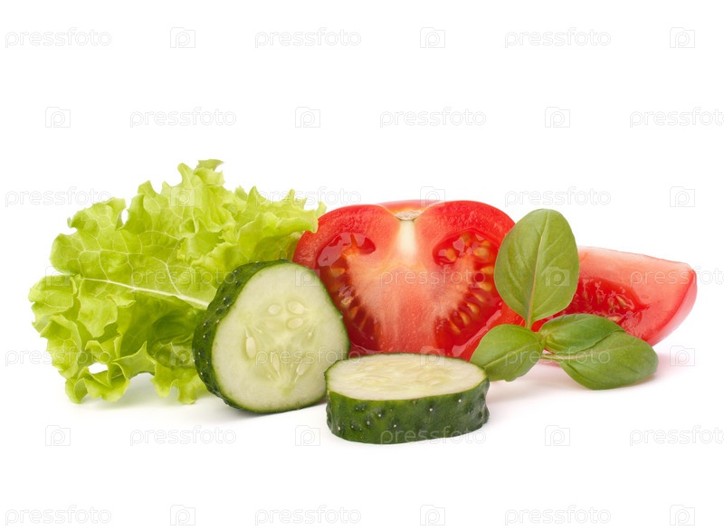 Помидор, салат и огурцы