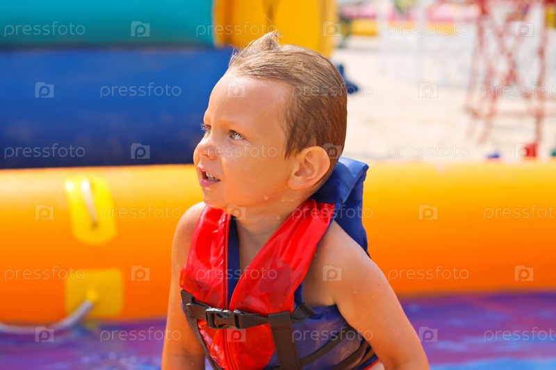 Ребенок в жилете в бассейне в аквапарке